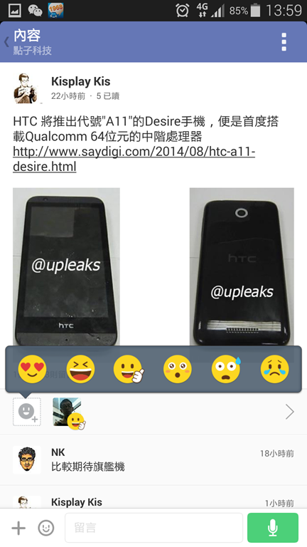 在佈告欄中的每一則討論,每個成員都可以進行討論與回覆,最簡單的回覆就是給個表情來代表看完後的心得。