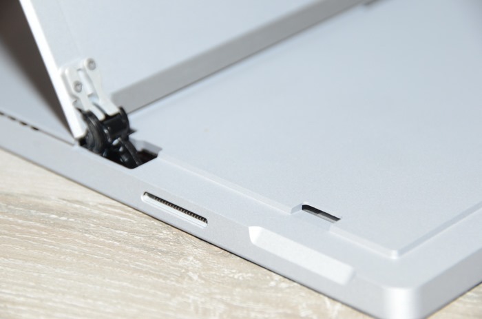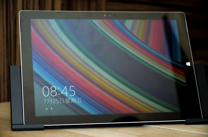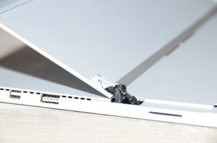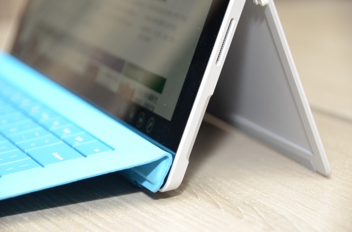 機身部分與前一代相同,採用鎂合金機殼(Ultra-light VaporMg)所製作而成,鎂合金的特色是密度低、強度、彈性與消除震動能力好,並具有很棒的散熱性,非常適合攜帶型的平板與筆電使用。在機身背後的支架部分,在Surface Pro 3上進化為無段式設計,可更自由調整各種使用角度。你可將支架調整到全開,以小角度直接在螢幕上以觸控方式輸入、或是以大角度方式置於膝上或是桌面上使用,相較於前一代的兩角度設計要來的更為靈活。