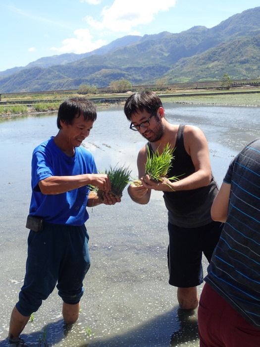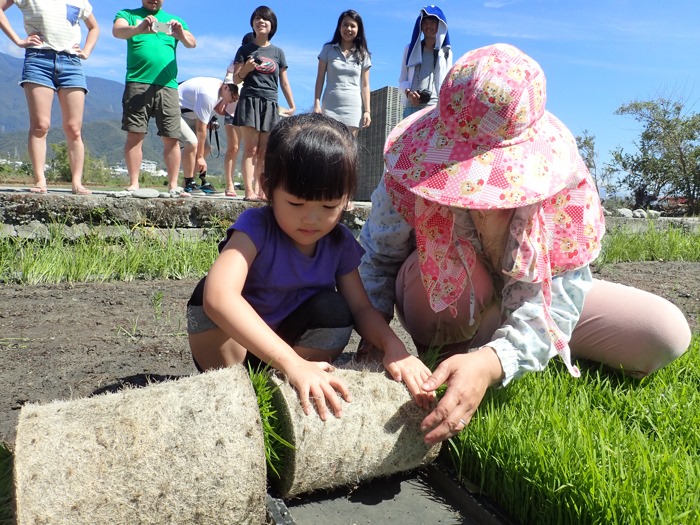 為了更了解農作與種植辛苦,所以大家就開始學習捲秧、插秧…,這些工作僅為所有農作的一小部分,但也讓大家累壞了。我家兩位從未與土地如此親密的女兒們,也嘗試下田學習,雖然一定是幫倒忙,但真的很感謝有這次機會,可以讓他們都實際了解嘴裡吃的米飯是必須經過非常辛苦的過程,才有辦法享用。