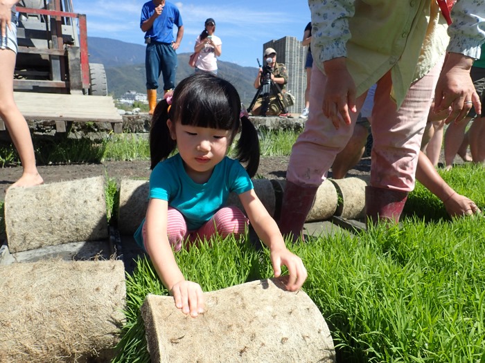 雖然現在都是直接使用高效率的插秧機,但我們還是要體驗一下如何插秧。