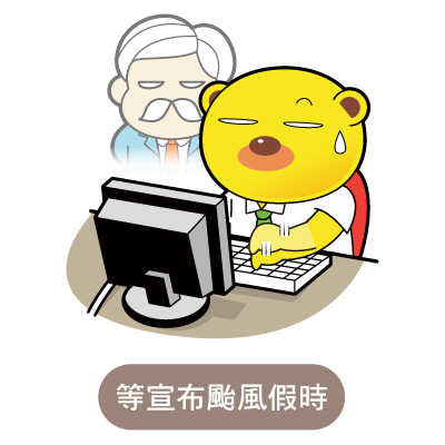 最 近幾年宣布颱風假的時間很不固定~~所以在颱風來的當天,政府又沒有在前一晚或是當天一早宣布是否放假時,看著窗外卻已經狂風暴雨時,你忍不住在工作之 餘,一直按F5重新整理一下「停班停課查詢」網頁,心想政府應該要放假了吧~~~不過如果真的重新整理時發現自己處的縣市可以放假了…這時也別太高興…因 為公司很有可能會因天氣太差的因素而不敢放假啊~~狂風暴雨的外面~突然讓你下班~如果有個萬一公司會對擔不起的吧~~~