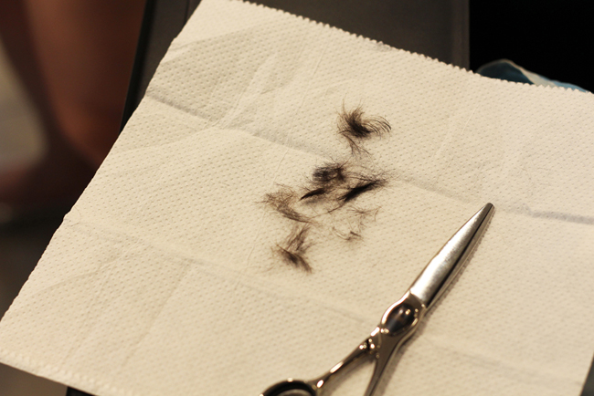 雖然頭髮短短的,但沒想到也剪了這麼多下來,有些人會拿去做胎毛筆之類的,我們是打算把臍帶和頭髮一起做成頭髮臍帶章,也就是人家所說的發財章,髮代表「發」、臍代表「財」,簡單紀念一下囉!
