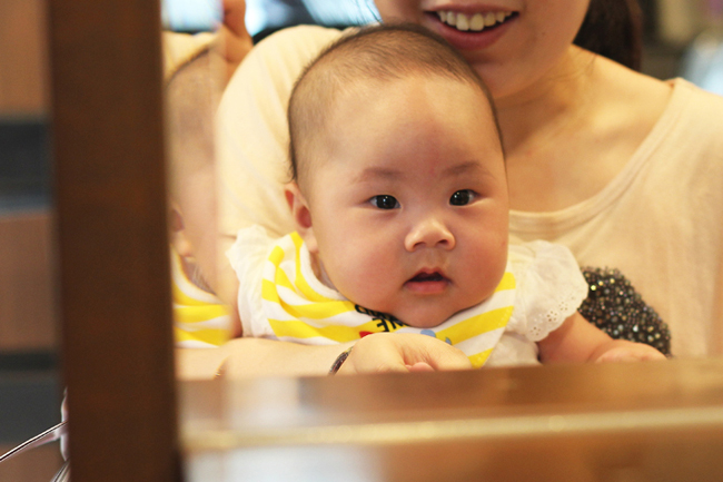小朋友說什麼也一定不是那邊乖乖坐著給你剪,陌生的人、陌生的環境、奇怪的舉動(你要對我做什麼?),多少還是會緊張。所以開始之前要跟她好好玩一玩,感覺小恰咪自己看鏡子也能玩得很開心。