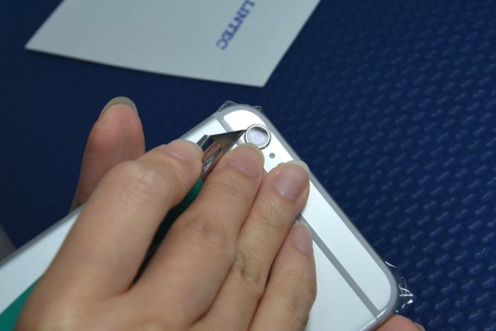 接著就是更小心的將膜仔細的完整包覆上 iPhone 6 Plus。