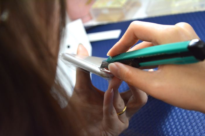當全部都包好膜,再來就是讓 Candice 相當佩服的專業技術-切割!