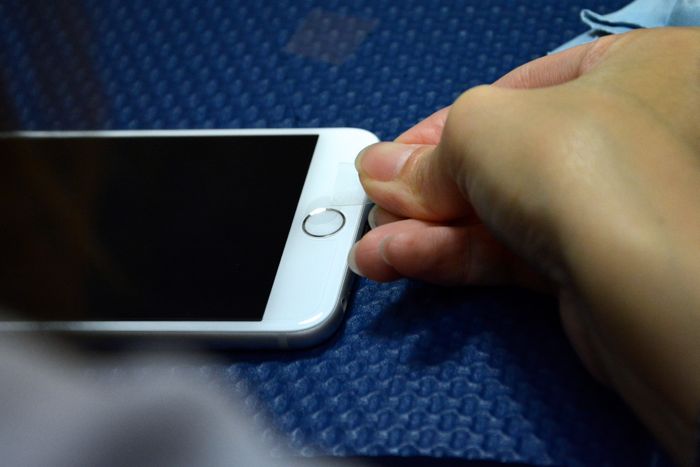 師父依舊熟練又迅速的完成了貼保護貼的動作,貼完後還貼心地貼上 Home 鍵貼。