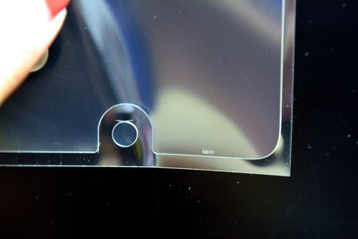 師父也在貼保護貼的時候跟我們解釋 imos 的保護貼都會在下方有個防偽的鐳射標記,就是擔心有不肖業者將品質不佳的保護貼魚目混珠的欺瞞消費者,當成是 imos 來販售與使用。