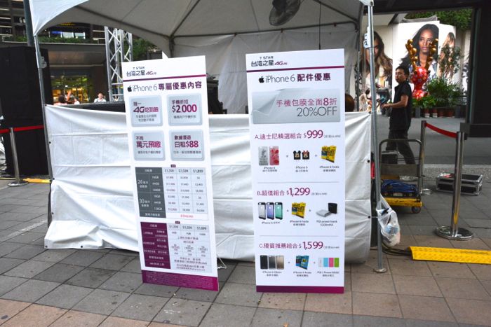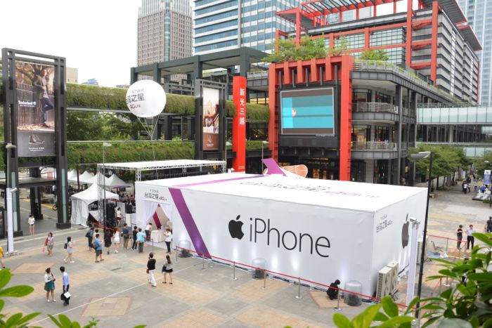 首先看到的是台灣之星大手筆的在信義區香緹廣場中搭起的巨型 iPhone 造型帳篷。