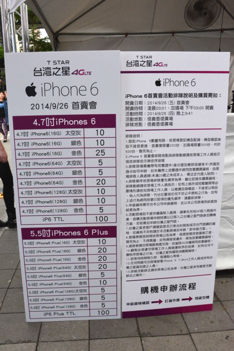 現場更是擺放出今天台灣之星所提供 iPhone 6/6 plus 各機型的數量,沒想到竟然是 iPhone 6 與 6 plus 各提供 100 隻驚人的大數量!而行銷事業部資深副總朱曉幸更表示,在 9 月 26 日下午 3 點會再舉辦加碼場,也將提供 iPhone 6 與 6 plus 各 100 隻相同數量!