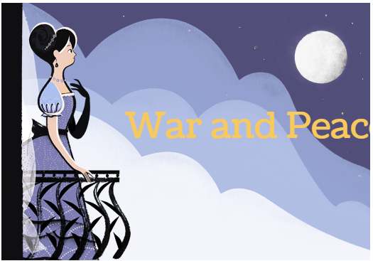 在這次的Google Doodle所出現的畫面,就是Leo Tolstoy 的三大名著,戰爭與和平(War and Peace)、安娜·卡列尼娜(Anna Karenina)與伊凡‧伊里奇之死(The Death of Ivan Ilyich)。