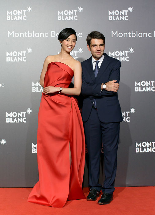 氣質女星桂綸鎂佩戴全新萬寶龍Bohème寶曦系列腕錶與珠寶(左)與萬寶龍全球執行長傑羅姆‧蘭伯特Jérôme Lambert出席上海萬寶龍寶曦盛宴