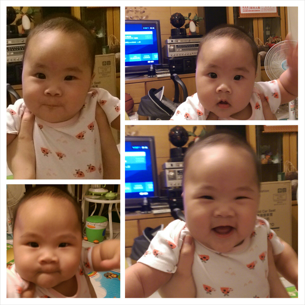 而且這個時候常會開始東看西看,也很會認人了,會有特別的表情來傳達自己的感受,遇到比較陌生的人就可能會扁嘴,但只要一聽到親人的聲音就會很開心很自在。