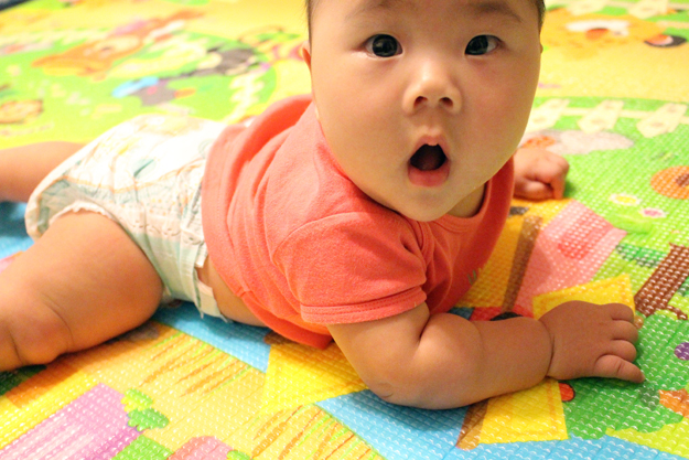剛好在這個階段是小恰咪最愛玩的時候,已經不能只放她躺在床上,一定要跟她玩或是在遊戲墊上給她很多新奇的東西,而且很喜歡重複的動作(難怪天線寶寶對很多小朋友這麼有用…),這個階段爸媽可以好好陪她們玩囉!