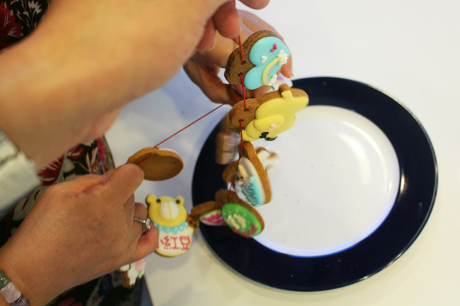 還好這些餅乾都設計得比較厚,把繩子穿過去的時候比較不會斷掉,但是也是要快狠準啦!很佩服買 24 個的朋友,全部穿過去應該也是個大工程,戴在小朋友身上應該也是很重吧!