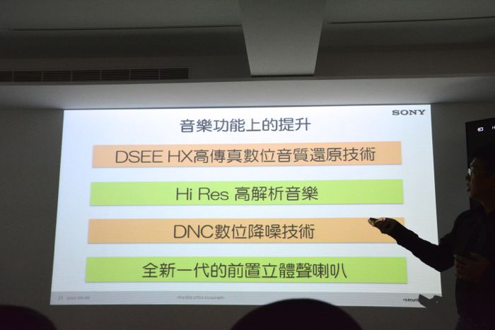 再來是音樂功能上的提升方面則是加入了DSEE HX 高傳真數位音質還原技術、 Hi Res 高解析音樂、DNC 數位降噪、新一代前置立體聲喇叭。