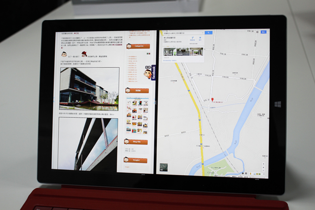 系統其實給我們很多的支援,尤其現在的 Surface Pro 3 有 12 吋,我們可以使用多工多視窗讓事情更視覺化,藉由分割視窗的顯示功能,無論切換應用程式或工作視窗,開啟多個畫面其實在一些比對或參照的工作上,可以有效提昇工作效率呢!