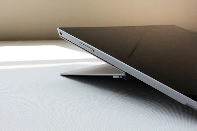 我覺得 Surface Pro 3 的最大關鍵設計應該是這個多角度整合式支架,新一代的設計還是「無段式」的,感覺怎麼放都可以,看自己的工作使用習慣囉!
