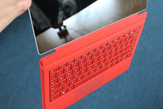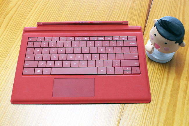 這裡不得不提一下這個聰明的設計,Surface Pro 3 提供了機械式鍵盤的特性,讓原本是平面的鍵盤也賦予了符合人體工學的鍵盤,藉由磁吸的方式讓鍵盤變得有點傾斜,打字就超順超舒服啦!