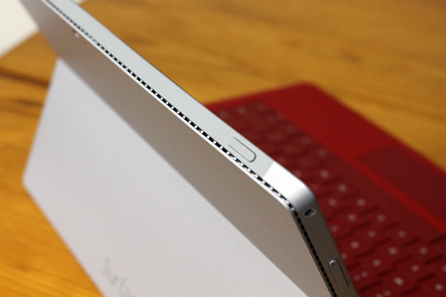 Surface Pro 3 儘管這麼輕薄,散熱也很不錯,外殼四周設計了整排的散熱孔,搭配機構裡面的冷卻循環設計,長時間使用也可以很穩定。