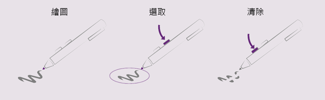 用數位筆最常使用的幾個動作,繪圖、選取、清除的操作方式,Surface Pro 3 的手寫筆和支援性就做得很好,剛剛介紹的按鈕也可以一起使用,習慣後再用其他產品真的會「回不去了」。