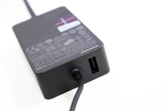 Surface 在很多細節上都做得很棒,除了剛剛前面提及的手寫筆、鍵盤保護蓋之外,變壓器的部份甚至有 USB 接口,邊工作可以邊充其他的行動裝置。