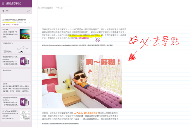 平常看到網頁上有一些不錯的資訊想要集中彙整起來,複製貼到 OneNote 還會同時貼心地帶出網址,我們甚至可以用筆在上面做一些註記,這樣整合許多資訊或零碎資料時就超好用。