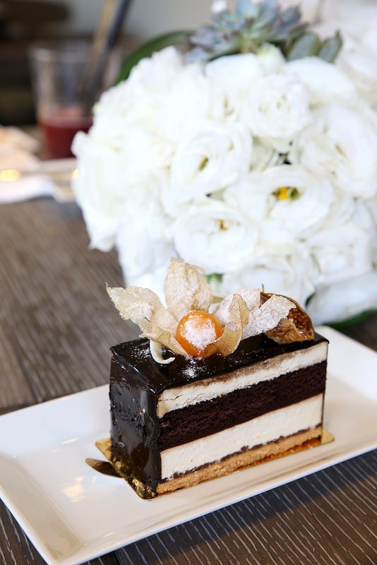 既然提到關鍵字”蛋糕櫃”,那就不能忘記餐後的甜點,大叔最喜歡的是這道燈籠果、無花果還有莓果在一起的巧克力蛋糕,微微的酸味讓人一整個吃完都不會膩口。另外,我個人覺得,如果點的是巧克力類的蛋糕,就要搭配紅茶或是咖啡,選什麼烏龍茶或東方美人就會有點不搭。