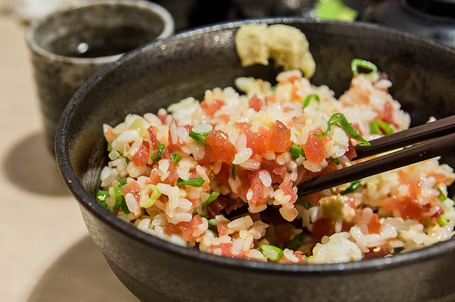 「蔥加鮪魚」的蓋飯是最後加點的,這是一道看起來平常但吃起來卻總能讓人滿足的簡單料理,也是我很喜歡點的一個蓋飯,特別是在我不想吃太多生魚片時。