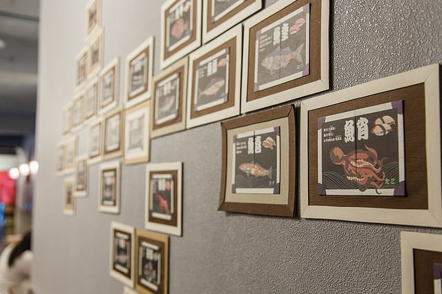 牆上有著許多魚類的畫對應著日本的「漢」字,比較有興趣的是畫的右上角還有對應的「握壽司」,但店裡其實好像是沒賣握壽司的!