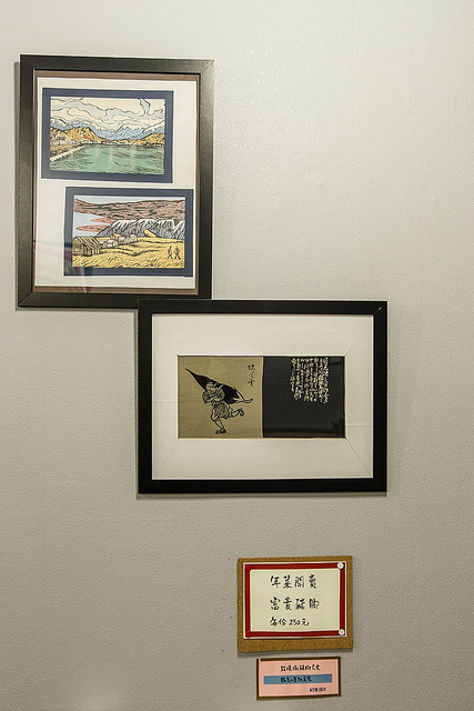日式面具、卡片、畫,然後茶桶之上放了個大野狼和小綿羊共餐的玩偶,著實引人會心一笑。