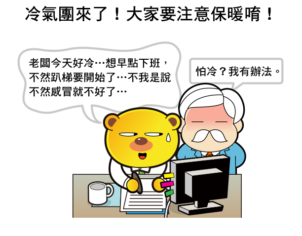 屁小熊 2014/10/14瀏覽: views 秋意濃~天氣涼~啊天氣開始轉涼了,屁熊也把衣服一件一件穿回來了~ 天氣一冷屁熊就會手腳冰冷,有時就算蓋棉被也是一樣啊~ 是因為沒有純聊天嗎? 喂~~~ 對於這個我有good ider~ 好啦~~總之大家也要為冬天做準備啦!如果大家對於保暖或是手腳冰涼有妙招的話歡迎討論~~~還有冬天很適合的就是來吃龍眼肉料理啦! 由屁小熊的小冊日記貼文。 Related Items屁熊內褲豬手腳冰冷秋意濃 好有趣 2014/10/14瀏覽: views 屁小熊 愛分享上班搞笑的屁熊還有內褲豬,職場不開心的話就快來找我們 ■作者:屁小熊 ■主題:職場、漫畫、生活、搞笑 ■個人網站:https://padbear68ee07.blogspot.com/ ■FB粉絲團:https://www.facebook.com/ppbear123 ■連絡方式:197968ee07@gmail.com Related Items屁熊內褲豬手腳冰冷秋意濃 next page