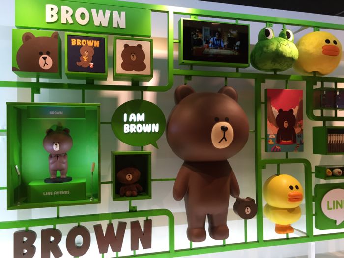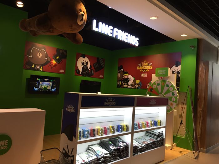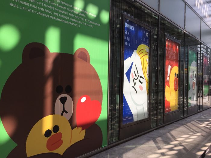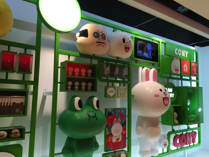 走到 3F 旗艦店,沿路就看到 LINE 人氣明星海報打造的巨型櫥窗陳咧在走道上,另一側還有可愛的小立牌可以讓粉絲拍照。