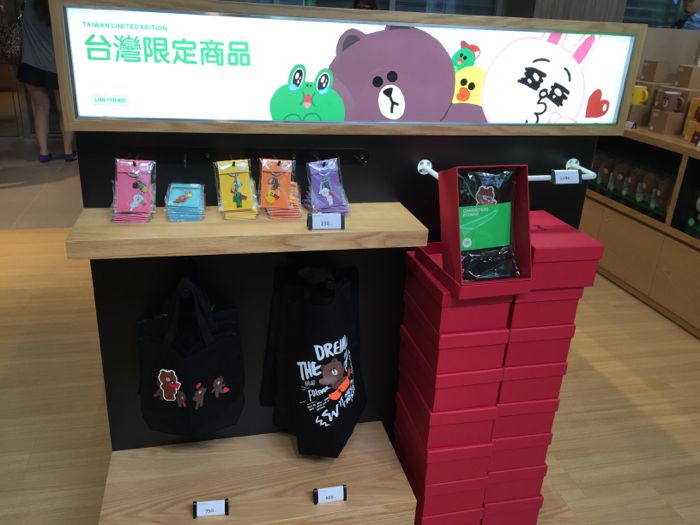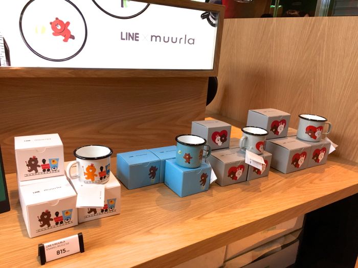 等到進入 LINE FRIENDS STORE,便能看到這次為了這間旗艦店所推出的台灣限定商品,包括了有著台灣國旗的鑰匙圈、環保袋,以及新品 LINE X MUURLA 琺琅馬克杯。