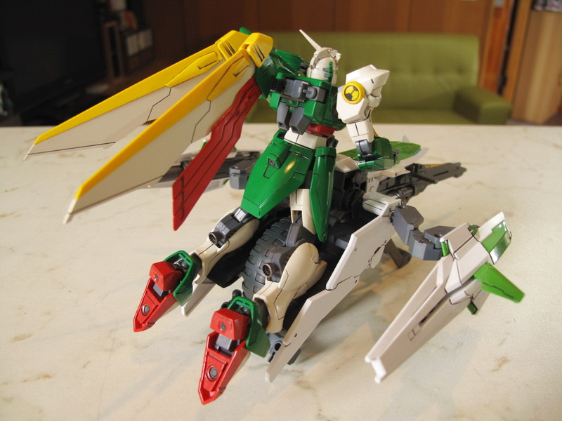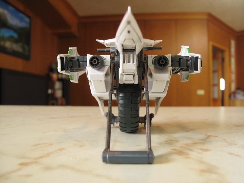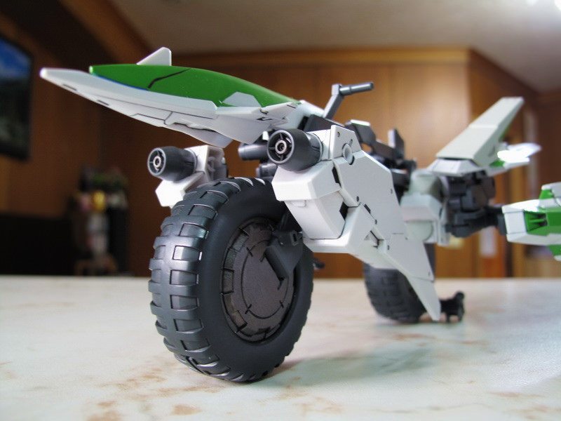 (以下正文開始XD)這台”單輪機車” Meteor Hopper也屬最早公佈的設定之一,是Build Fighters劇中,義大利代表”費里尼”創作給愛機Wing Gundam Fenice的移動用支援機,以飛翼鋼彈的盾作為機首(很相似)的單輪機車有非常特別的造型,從一開始公佈就很吸引人,儘