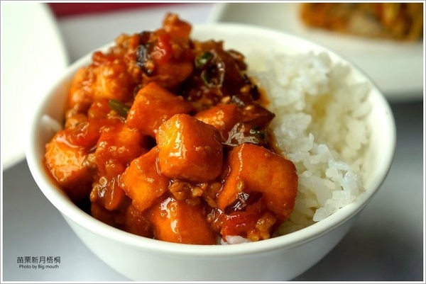 ▼這道豆腐燒類似麻婆豆腐與哨子醬的改良版,採用先炸過的蛋豆腐下去紅燒而成,吃起來外酥內嫩,酸甜開胃,非常入味好吃!