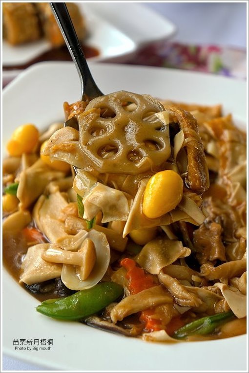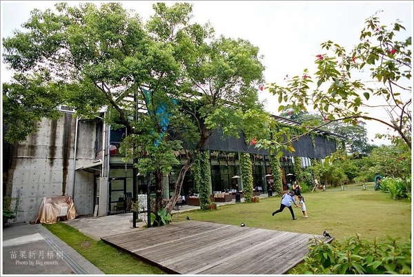 這 次大口要帶大家來去苗栗吃美食溜!位於苗栗三義的「新月梧桐」三義店,沿著舊山線一直走,在前往勝興車站的路上就會看到;沿著指標進入,有一大片的停車 場,走上坡道後,挑高10米的清水模牆非常壯觀,爬滿的藤蔓與扶桑花相得益彰;主建築體帶有點工業風的設計,加上客家花布的元素,一整個融合得很巧妙,門 口大大的庭園除了可以休憩之外,還可以舉辦戶外婚禮及派對,非常漂釀!餐點走的是華洋料理,融合客家菜、中華菜、台菜與歐法料理精髓,選擇多多,從單點、 個人套餐、2、4、6、8、10人份套餐應有盡有,另外也有蔬食套餐、伴手禮等等,吃素的捧友也有不少選擇唷!接下來趕緊帶大家來去看看「新月梧桐」三義 店美麗的景觀與美味的餐點吧!