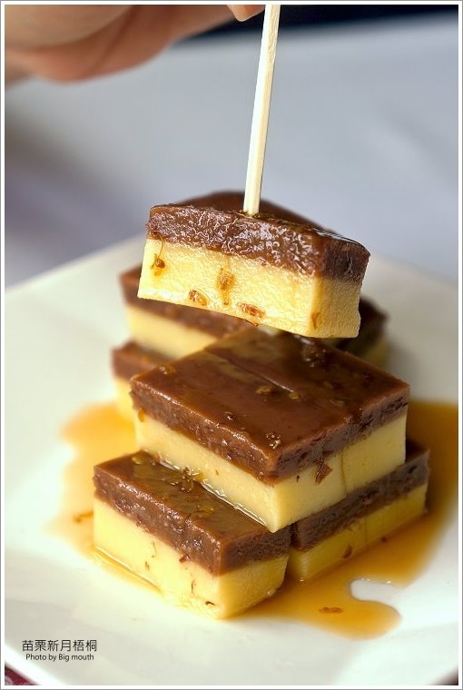▼飯後甜點出現惹!桂花糕,上頭是紅豆下面是碗豆黃,再淋上桂花醬,吃起來口感綿密細緻,微甜芳香,搭配桂花醬吃起來相當清香,適度將甜度中和掉惹!