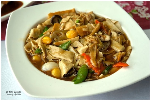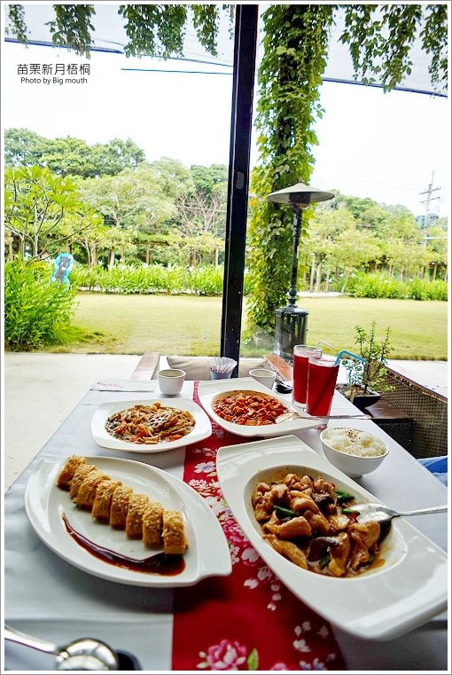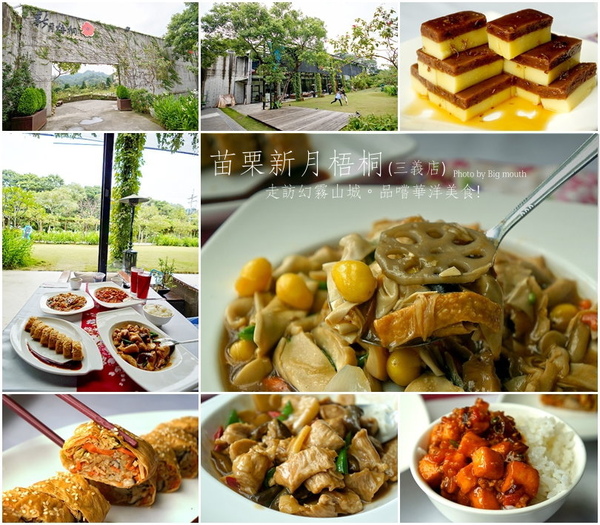 「新 月梧桐」三義店環境幽靜、草木扶疏、彩蝶飛舞,是一個讓人感覺輕鬆自在的地方;餐點選擇多多,以中菜為主,西菜為輔,結合苗栗三義在地食材,融合客家菜、 台菜、中華料理與歐法料理,成就這麼一個特別又美味的創意料理,味道與口感皆讓人難忘;來到這裡,不管是幾個人用餐都很合適唷!很適合一家大小或朋友出遊 聚會,另外舉辦宴席或派對也都沒有問題,這裡的場地寬敞,環境優美,餐點美味,保證會讓賓主盡歡!推薦給有興趣的捧友們,有機會不妨來苗栗這個幻霧山城走 走,會讓人有種世外桃源的感覺!