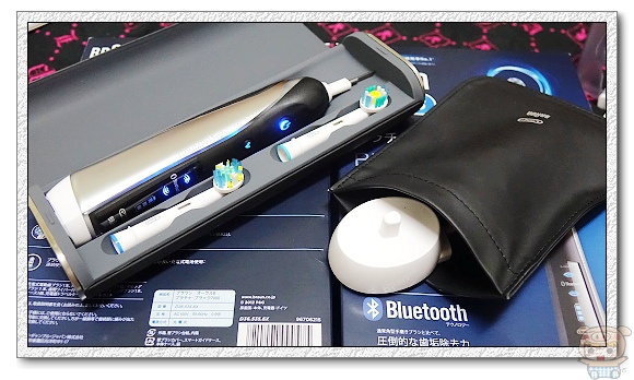 首先當然是來看看主角「德國百靈Oral-B P7000 Platinum Black白金級電動牙刷」整體就是一個時尚與未來科技結合的工藝精品,如同賽車般的造型外表,這可是由全球知名的德國工藝設計大師迪特、拉姆斯Dieter Rams啟發而誕生,符合人體工學的機動性,尤其上面使用的冷色系的藍光,更是添加了美感,真的超漂亮的,握在手上的感覺相當的棒。