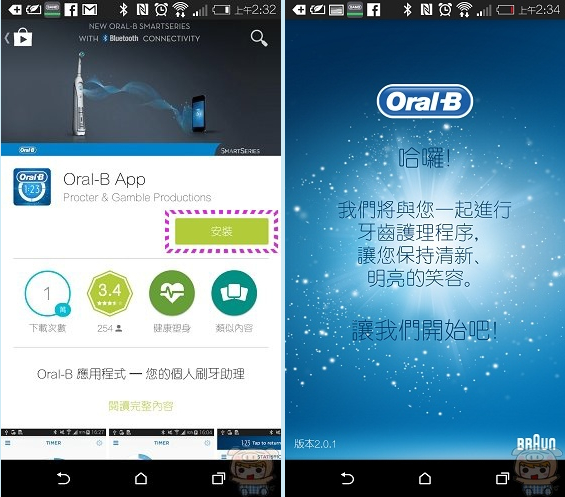 接著就是來下載它專屬的APP,請至Play商店裏或是App Store搜尋 Oral-B即可搜尋到它專屬的App,Oral-B App本身是免費的,所以請放心下載安裝!