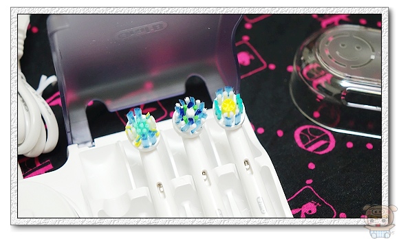 盒內免費附贈的三個刷頭,由左而右分別為IC智控潔板刷頭、多動向交叉刷頭、專業美白刷頭。透過這些刷頭讓您感到深層清潔、輕柔清潔、按摩牙齦、自然美白及舌苔清潔等驚人的效果。