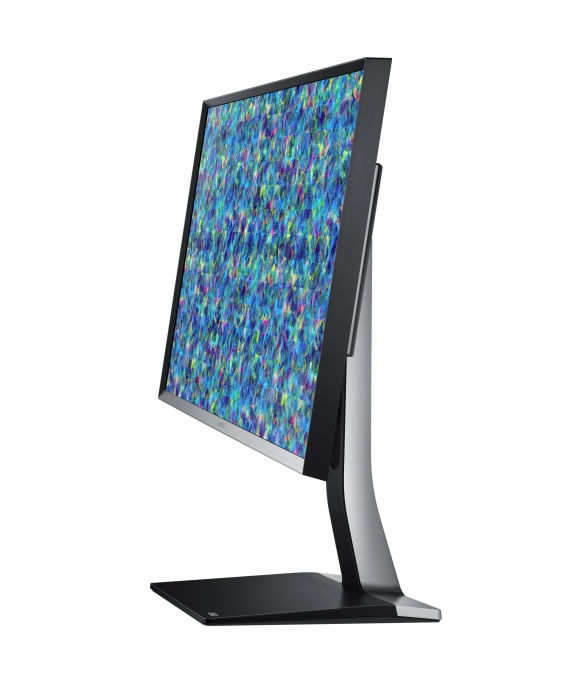 Samsung UD970可依照工作環境需求調整顯示器觀看角度,增加觀賞舒適度,HAS可調式支架可上下調整13cm幅度,左右旋轉幅度達30度,上下傾斜角度可由5度調整至20度,螢幕亦可旋轉90度呈直向顯示。UD970機身正面採用抗反光面板及霧面黑色邊框,機身背面以消光霧面處理,並加入鈦金屬質感元素,獨特精緻設計更能在辦公室彰顯使用者的專業地位。