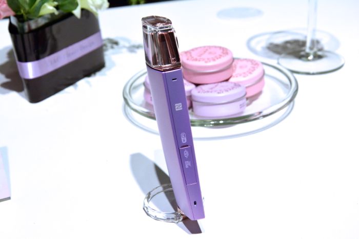 鏡頭與補光燈周圍加入了水晶元素的設計奢華感,機身共有著法式優雅的白、粉紅、紫與綠四款加入珍珠光澤的精品質感。