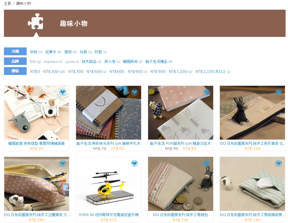 有看到喜歡的商品都可以先點選右上角的愛心加入最愛,在慢慢篩選進行結帳