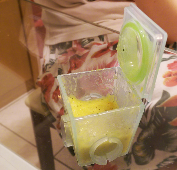 從平常喝的ㄋㄟㄋㄟ進展到副食品,因為初期需要吃得比較細,所以還需要磨一下,當然有果汁機、攪拌棒或研磨器的朋友就可以好好使用囉!初期可以吃些南瓜、粥、地瓜、青菜、紅蘿蔔…等食物,研磨好的副食品可以先用容器裝起來,多的可以拿去冷凍庫存放,到時有需要再拿出來加熱就 OK 啦!