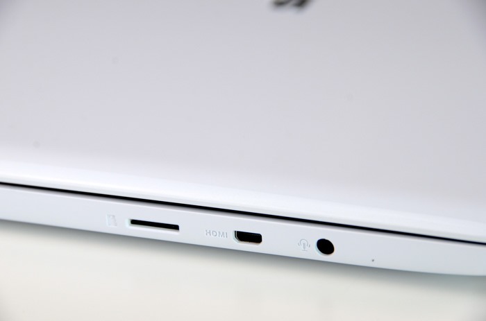 機身左側配置電源插孔、microSD、micro HDMI與3.5mm耳麥孔。