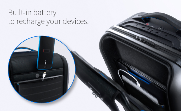 這款名為 Bluesmart 的登機箱可以透過藍牙與行動裝置結合,來進行開關鎖、測量重量、追蹤位置… 等等我們一般旅行最需要的功能,甚至背後還有著充電線能夠為我們的行動裝置進行六次以上的充電呢!
