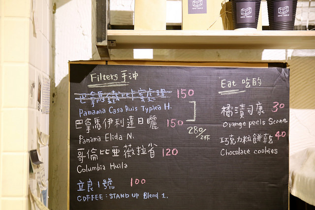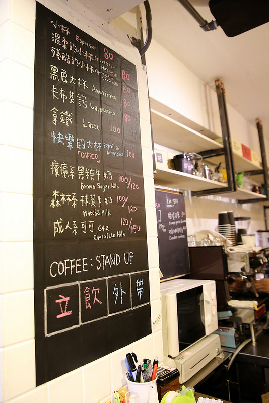 大叔非常喜歡這樣的產品設定,在 COFFEE : STAND UP 這裡,小杯 (Espresso)、溫柔的小杯 (with HOT milk)、殘酷的小杯 (with COLD milk),都只要$80元。而經過手工挑除瑕疵豆的莊園級單品手沖咖啡,也只要$120~$150元。