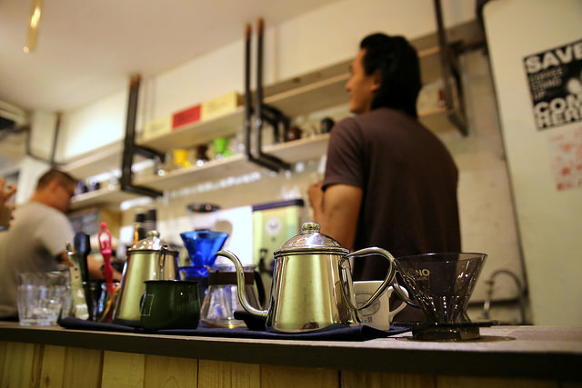 店內手沖咖啡採用KONO錐型濾杯。