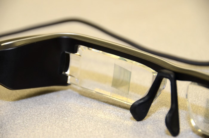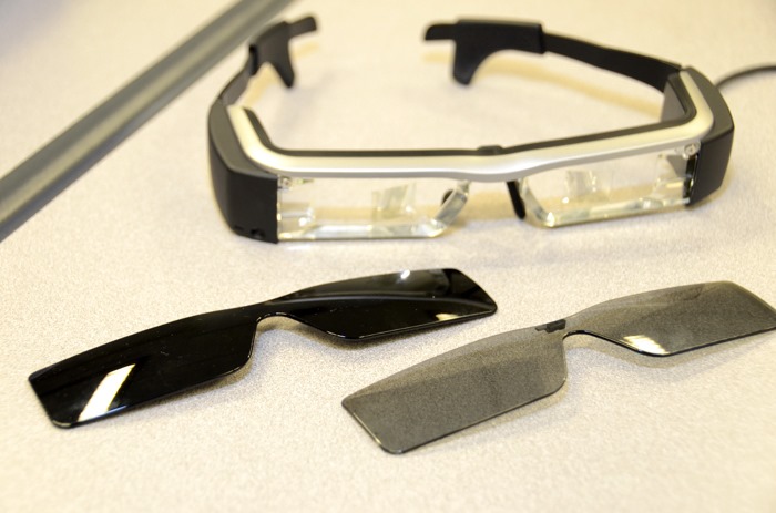 另外還可在BT-200前方加掛深色鏡片,這樣可讓在享受影音多媒體時,有更好的對比與畫質,但你依舊可以看到外界的狀況,才不會帶著眼鏡被偷偷打頭都不知道是誰打的。